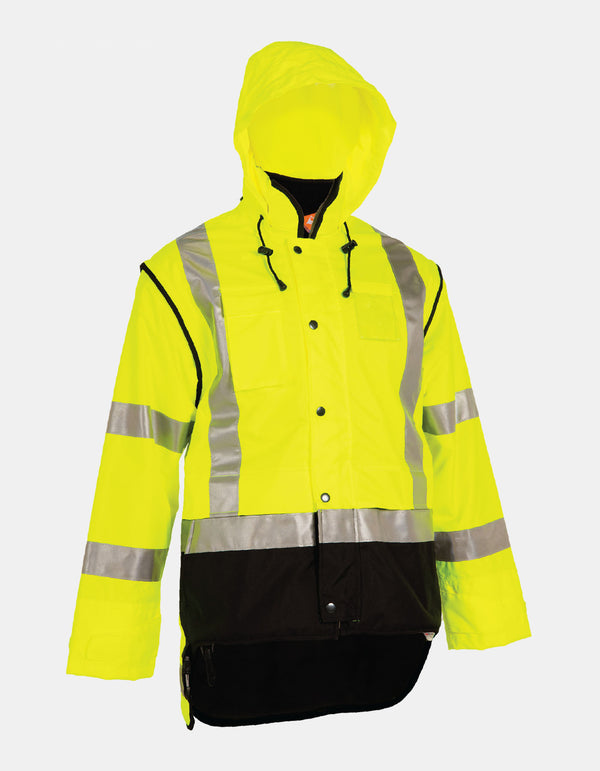 1642-LIM-SThis 2 in 1 winter jacket/winter vest features fleece lining, removable sleeves, a high storm collar, cellphone pocket and two-way zip with domed stormflap.