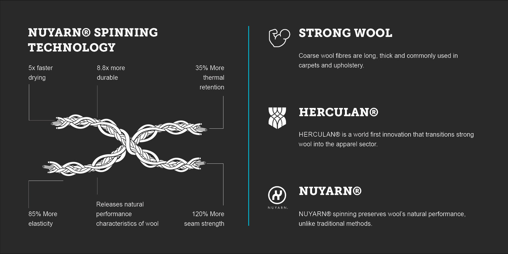 These socks are crafted using two types of wool – traditional high-quality Merino and Herculan® strong wool. Revolutionary Nuyarn® spinning technology is used to create Herculan® strong wool, utilising wool fibres typically found in carpets and renowned for its strength. Herculan® strong wool is remarkably soft while retaining its durable qualities and lasting 8.8x longer than standard merino wool.