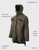 Complete with a two-way zip, handy pockets and an adjustable hood.